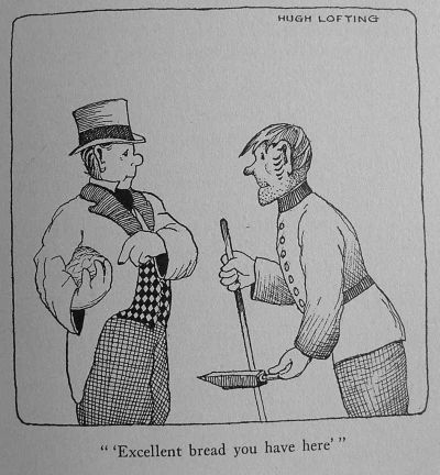 Mr. Bellomy was very kind. Realizing that the Doctor and everyone had been left practically penniless, he offered to help the new management with loans of money or in any other way he could. However, John Dolittle was most anxious to avoid getting the circus further into debt than it already was, and all he asked of Mr. Bellamy was to visit some of the tradespeople of this town with him and ask them to give him credit, to trust him for a while. Mr. Bellamy was, of course, very well known for miles and miles around Manchester. And the local corn-dealer, grocer, butcher and the rest were perfectly willing, when he asked them, to give the Doctor provisions and to wait for their money till the circus had made enough to pay its bills.