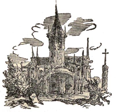 In a short time, they perceived, from the windows of the castle, three nuns, who were walking along, apparently in great fear, and pressing closely to each other, as if for protection from the storm. A tremendous wind tore off the veils which covered their modest brows; and the rain, which fell in torrents, soon penetrated their light garments.