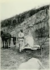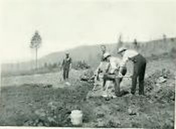 Having thoroughly cleared the land of trees, scrub (chiefly by burning), and stones, and ploughed and harrowed it, the next operation ought to be the sowing of a crop of clover, 12lbs. to the acre, in July or August if the ground is only moist enough—that is to say, as soon as rain falls. This crop will then be ploughed under in the following spring, and thus supply the ingredient that the virgin soil of the Kootenays principally lacks, humus—that is, decayed or disintegrated vegetable (or animal) matter. If there should be a supply of good stable manure available (which is seldom the case) it will serve the same purpose as the clover. It must be admitted, however, that the majority of planters proceed to plant without sowing clover.