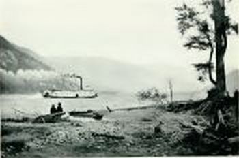 The boat by which we travelled from Kootenay Landing, at the south end of Kootenay Lake, to Nelson, near the western extremity of the west arm of the same lake, was a stern-wheeler, shaped like the boats which ply up and down the Mississippi. The "boat" proper is flat-bottomed and very shallow. Above it are constructed three or four oblong, round-ended stories, to contain the general cargo, the passengers' dining-saloon and other apartments, the sleeping berths, and the skipper's steering-box or outlook. These boats, at all events on the inland waters of British Columbia, draw only a very few feet of water at the bow. This is to allow them to push their noses on to the sandy shore when called upon to land or take on board passengers or cargo. The country is not yet old enough to afford landing-stages at every stopping-place. Sometimes, indeed, a landing-place is marked by only a single, solitary house; often by not more than two or three houses at the most.