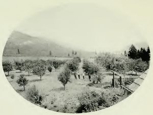 One word of warning is necessary. The English settler, accustomed to the trim and orderly aspect of an English ploughed field, with its unbroken and level expanse of brown soil and its neat hedges or straight lines of fences, must not look to find the same things in a new country such as British Columbia. I do not mean to say that nowhere will he find the counterpart of what he has left at home. Tracts of land, evincing the same advanced cultivation, are not, indeed, difficult to find; but by far the greater portion of the orchards presents, as yet, a much more unfinished appearance. It is not many years since the whole of British Columbia was covered with forest trees and scrub. The orchards have had to be carved out of the virgin forests. In many cases the work of eradicating all traces of the forest has been thoroughly and effectually performed; in many other cases it has been accomplished in a more or less incomplete fashion. The stumps of the big trees, cut off at the height of two or three feet from the ground, and blackened by the fires which burnt away the scrub and bush, attest impatience or want of thoroughness on the part of the first original settler.