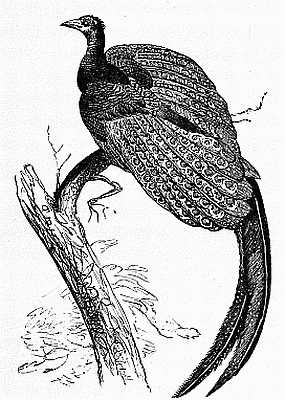 10. About the size of the turkey, the form of the peacock is lithe and graceful; and it carries a train longer than his body, covered with gauzy feathers of green, gold, bronze, and blue, all blended into the brightest and richest hues, as he raises and spreads and turns his tail to the sunlight. The eyes in the feathers of this overskirt are like those of the peacock-butterfly, which boys catch with their hats in summer-time. The peacock has been known to live as many as a hundred years.