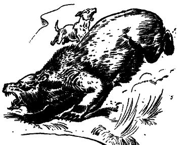 A pebble fell behind him, and a little chunk of earth dropped to the floor of the cave. The dog snarled fiercely and trotted back into the cave. He stood still, muscles tense and head alert, then nervously padded back to Hawk. Another clod of dirt dropped from the cave's roof, and another. Again the dog returned to the cave, as though he wanted to locate something that should be there. He bristled.