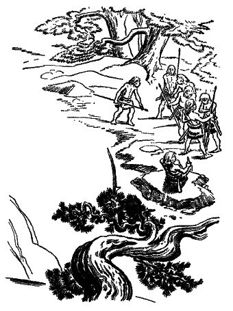 The hunters milled about, confused by fear and awe of the lone man who could send his little spears such an incredible distance. The leader, however, apparently enraged by the slight wound he had received, was dancing up and down, brandishing his spear. From his actions, Hawk concluded that he was trying to overcome the hunters' fears. Had the serpent's power no effect, then? His hopes began to give way to black despair.