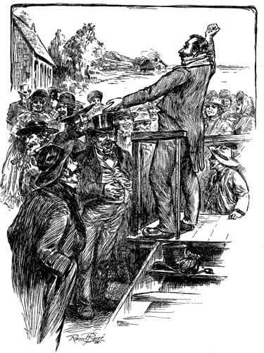 Et, comme je regardais, un peu ahuri, ces enfiévrés travailleurs occupés à fourbir leurs armes et à remplir leurs carquois pour les luttes électorales, j'entendis une voix grave qui disait: