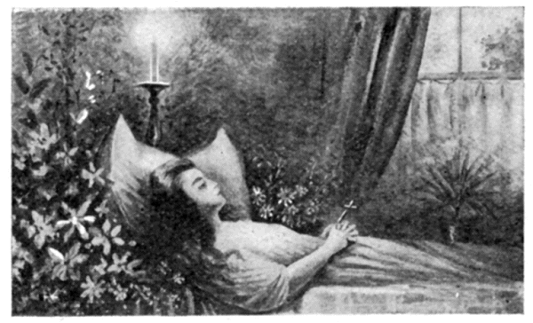 Célestin regardait d'une façon singulière, la jeune malade dont le visage livide émergeait de l'oreiller aux grandes fleurs bleues. Moi je priais; mais je ne priais pas sans distractions. Je songeais à la masure et au payen. Tout à coup la moribonde se dressa sur sa couche et jeta un cri: