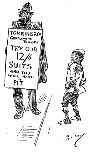 Bill Snooks (reading from a fashion paper).—"To be really well dressed a man's clothes should have the appearance of having been worn once or twice.' What O!"