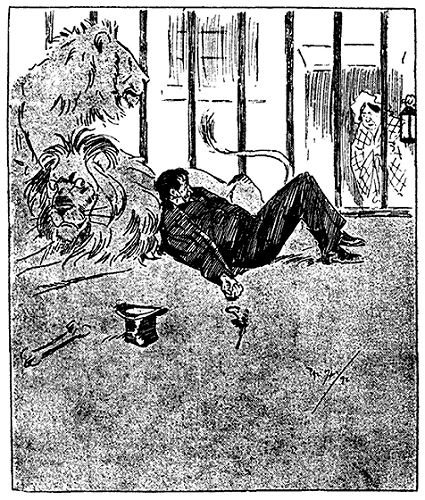 Wife (to Lion Tamer who has been out late).—"You Coward!"