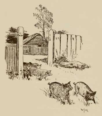 "They're gone in," he said in a disappointed tone, "but I don't know that it matters much. For it would have been too dark for you to count them properly, mamma. It was a lot of little pigs, mamma, in Farmer Wilder's field; little black pigs—twelve of them."