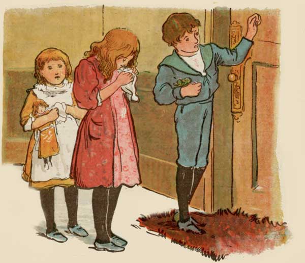 "Master Bob," she said, "run down and ask cook to let you out by the back-door. I think I see the poor flower down there. It must have fallen over."