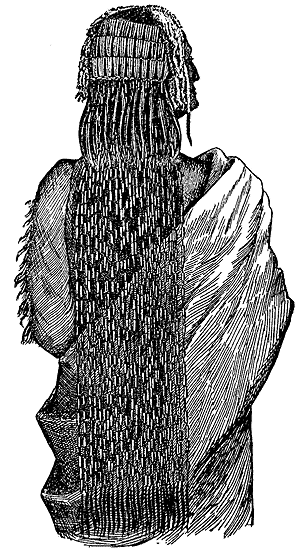 Les hommes avaient généralement pour couvre-chef une peau de petit animal, castor ou belette, peut-être leur totem personnel, enroulée autour de leur épaisse chevelure, et leur septum, ou cloison nasale, était encore percé, bien que d'ordinaire dépourvu de la cheville, de l'anneau ou de la rondelle qu'ils avaient précédemment portée.