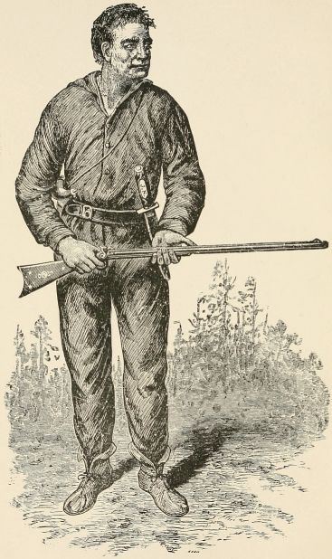 "Well, one day, a few weeks after, a man came into the shop and asked the master: 'Have you a good, strong keg for sale?' And he put the question in such an earnest, half-spiteful, and half-suspicious way, that I fairly started within my hoops, and opened my eyes wide to take a good look at him; and a very peculiar man I saw, too, I assure you. He was quite a young-looking man, not more than forty years of age; of good height and strongly built. He was a gentleman, evidently, although his face was darkly tanned and his clothes were old and threadbare. His mouth was rather small than large. His lips were thin and had a look of being tightly drawn over the teeth—at least it seemed so to me. His chin was very long, and was joined at the base to large, strong jaws. His hair was brownish-black, and not over-abundant; indeed, I am not sure that he had not even then begun to grow slightly bald. But the remarkable feature of his face was his eyes. They were blue-grey in color, smallish in size, and set in deep under the arch of the eyebrows. How hard and steel-like they were, and restless as a rat's! And what an intense look of suspicion there was in them,—a half-scared, defiant look, as if their owner felt every one to be his enemy, against whom he must stand on his guard, and whom he might at any instant have to fight and kill. Ah, what eyes they were! and how they came and went to and from your face, and shot their glances at you and into you—ay, and through you, too. I grew to know them well afterward, and to know what the strange, wild light in them meant; but of that by and by.