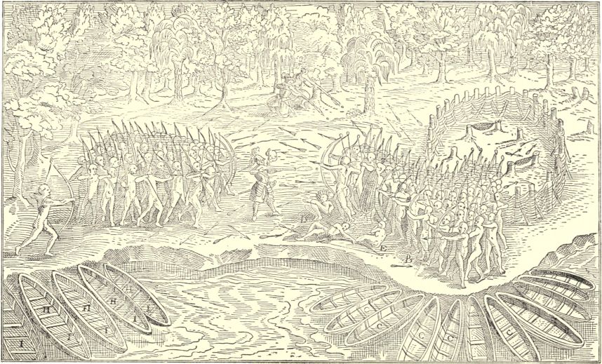 After a grand war dance at the infant settlement of Quebec, the allies set out together. Champlain was in a boat, carrying, besides himself, eleven men, chief among whom were one Marais and a pilot named La Routte, all armed with the arquebuse, a species of firearm shorter than the musket, and therefore better fitted for the woods.