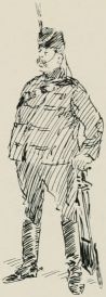 Here comes my noble Captain. He's a bit of a slacker, I fancy. Wish he'd buck the men up more in their drill. They were simply awful yesterday, I thought, but he didn't seem to notice it; in fact, I rather imagined he didn't approve of my goin' for 'em in the way I did. By Jove, if I said "Wake up those men," once, I must have said it a hundred times.