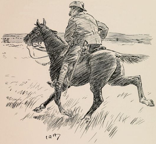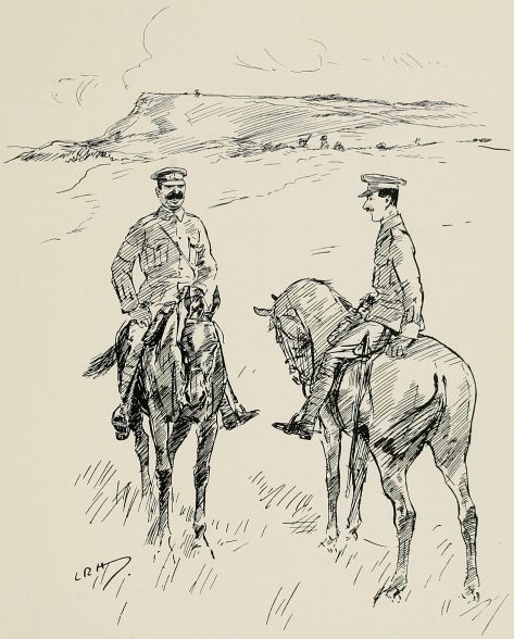 Thursday.—Everyone 'ad to clean the bloomin' camp twice over to-day, as we was to be inspected. I niver seen such a place for getting dirty; you brushes yerself down an' blacks yer boots an' polishes up yer rifle, an' in ten minutes you are that covered in dust as you look as if you 'adn't washed for a week.