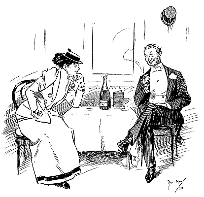 Before the Bulletin contract expired in the autumn of 1888, May had attracted to himself another good friend, anxious to assist in his artistic development. This was a Mr Theodore Fink, a wealthy Australian, who thought that a term of study in Rome and Paris would be for the benefit of May's art, and so urgently pressed his desire to provide the expenses of the experiment that in the end May gratefully accepted the offer. There were many reasons prompting a return to Europe. Money in those days was plentiful in Sydney, but living was extravagant, and May's earnings did not provide much more than the weekly expenses. Though his own health had improved, that of his wife had of late been indifferent, and, with all their Australian success, both were growing a little homesick. Moreover, beyond Rome and Paris there was always the lure of London, the centre of all things in Phil May's world. So with every gratitude to the excellent Mr Fink, who was well content to support the cause of art with a thousand pounds, the Mays set out for Europe in the late autumn of 1888.