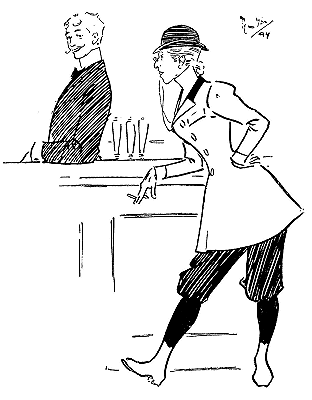 ![]() A REJOINDER 'Arry (whose ‘Old Dutch’ has been shopping, and has kept him waiting a considerable time: ‘Wot d'yer mean, keepin' me standin' abaat 'ere like a bloomin' fool?’ 'Arriet; ‘I cant' 'elp the way yer stand, 'Arry!’ Larger size |