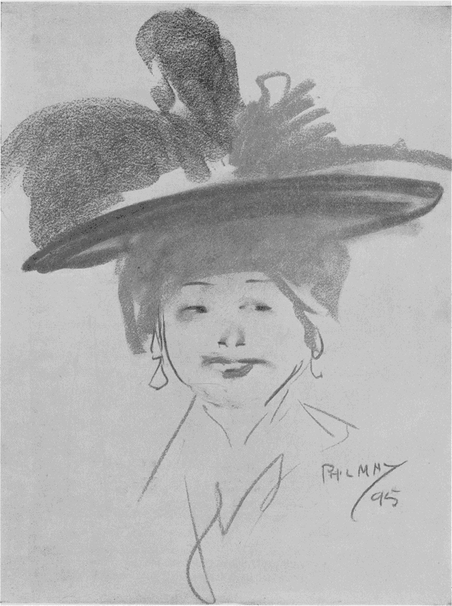Their sea-journey back finished at Naples, and the Mays went thence to Rome. Here Phil set to work to justify his patron's liberality, but with all his study of the old masters he did not neglect the close observation of contemporary characters. Indeed, there can be no doubt that the world of his own day was May's best school, and the life about him offered a better training for an artist of his temperament than the works of the great painters of the past. Nevertheless Rome and its works of art and architecture impressed him deeply, and he expressed the fact in his own peculiar fashion when he wrote in a letter to his brother that ‘Be it ever so crumbly, there's no place like Rome.’ From Rome, after a short visit to London, he went to Paris, where he shared a studio and garden at Puteaux with Henry Thompson, a landscape painter. Thompson, whose portrait often appears in Phil May's drawings, afterwards edited the last seven of the Phil May Annuals. Among his other friends in Paris were William (later Sir William) Rothenstein, Charles Conder, and two Americans, both well-known illustrators, W. T. Smedley and C. S. Reinhardt.