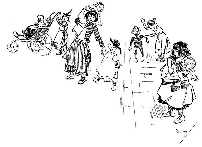 As the family was left without support, Phil May, who at his father's death was only nine years old, received very little schooling. He attended St George's School from 1872 to 1875, Oxford Place School from 1876 to 1877 and Park Lane Board School in 1877, but was sent to work before he was thirteen. A contemporary has told how he used to make copies of the drawings in Punch and Fun, and while still at school he won as a prize for drawing a T-square and drawing-board. He was even then a boy of distinct personality, a natural leader among the others, full of fun and the zest of life, interesting and lovable, and such a boy he remained to the end.