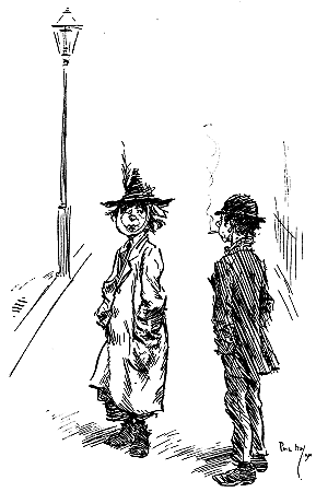 Many of the earlier Punch artists--Doyle, Keene, Leech and Sambourne among them--had been first presented to the public in its own pages. Phil May, with Bernard Partridge and Raven-Hill, belonged to a later generation, who had made their reputation elsewhere before joining the staff. Little or nothing in the way of official recognition came to any of the band, although John Tenniel and, later, Bernard Partridge received the honour of knighthood. In 1896, after the publication of Gutter-snipes, May was elected R.I., the only contemporary black-and-white artist who shared the distinction with him being Hugh Thomson. Lord Leighton, then President, who greatly admired May's work, wished to see him proposed for election as Associate of the Royal Academy; but Leighton's death early in 1896 ended the idea, for no other academician of that time had the temerity to adopt it.