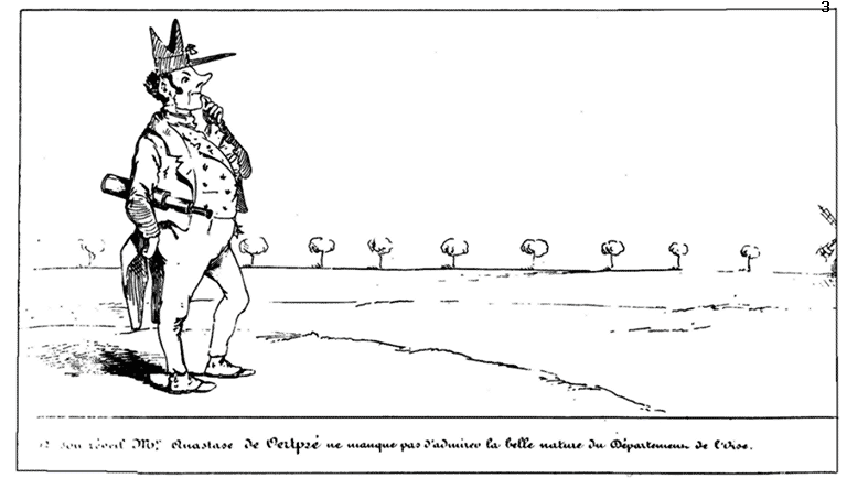 | Sa ménagère le suit. | Mr. Anastase de Vertpré renonçant aux douceurs de la vie champêtre regagne la capitale. |