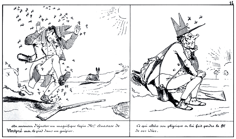 | Au moment d'ajuster un magnifique lapin, Mr. Anastase de Vertpré met le pied dans un guêpier. | Ce qui altère son physique et lui fait perdre le fil de ses idées. |