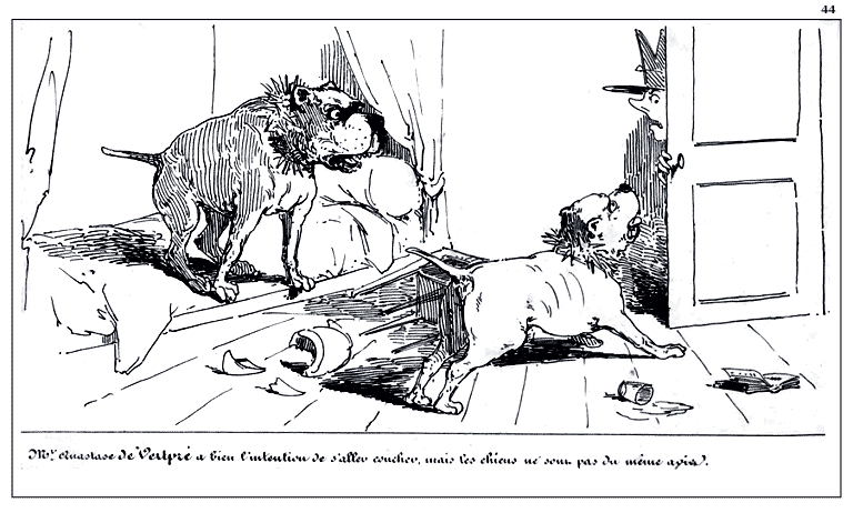 Mr. Anastase de Vertpré a bien l'intention de s'aller coucher, mais les chiens ne sont pas du même avis.